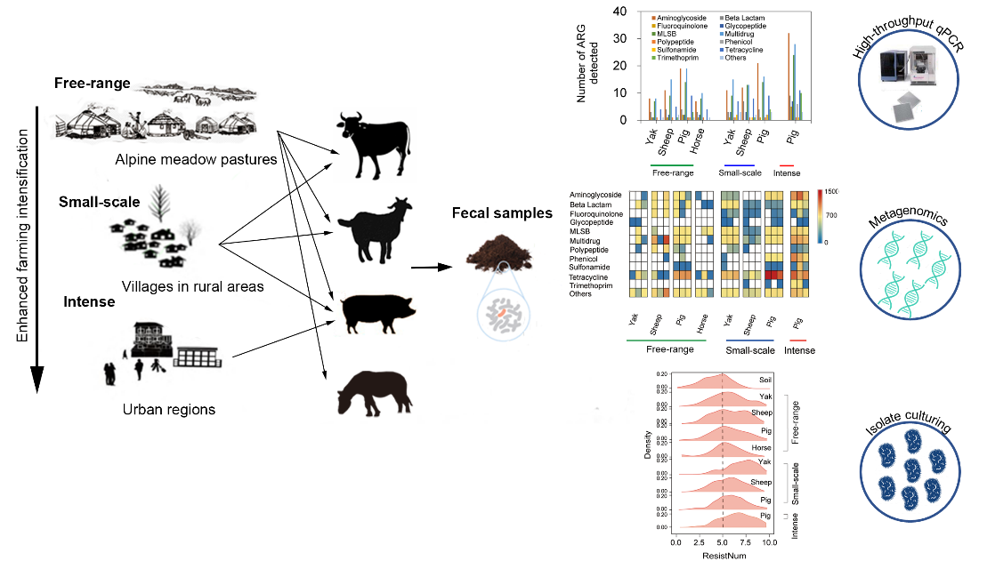 在全球One Health的框架下,动物粪便所引起的健康风险,特别是抗生素耐药菌在人类-动物-环境之间的传播受到人们越来越高的关注。本研究为青藏高原区域养殖方式转变所引发的动物粪便抗生素耐药性的环境风险提供了最直接的证据。