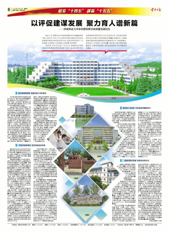 审核评估不是终点,而是学校高质量发展的新起点。从2004年本科教学水平评估促进学校更名升博,到2016年审核评估推动学科专业跃升,再到如今以新一轮审核评估为契机追求卓越,西南林业大学始终将评估作为“助推器”,在“树木树人、至真至善”的校训指引下,朝着建设特色鲜明、国际知名的高水平大学目标稳步迈进。